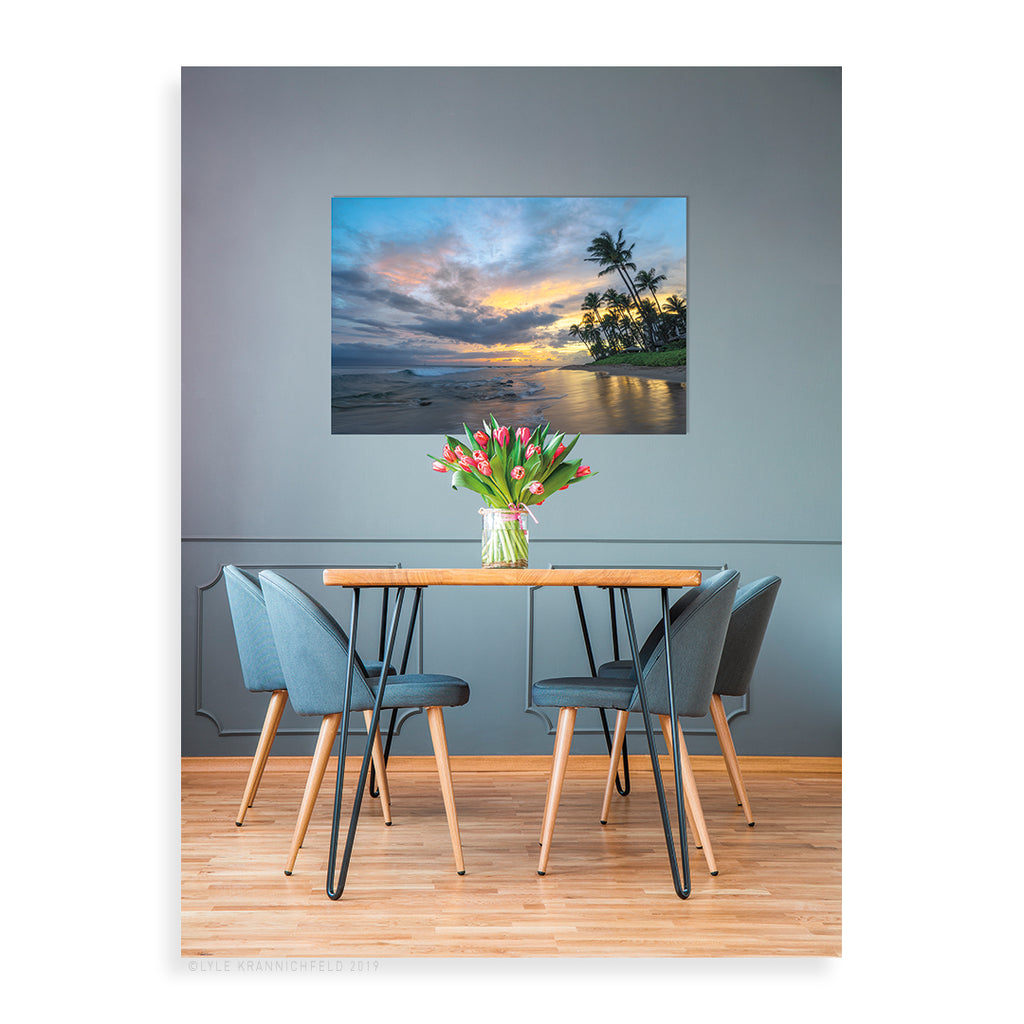 Lumachrome: An incredible, stunning upgrade! Lumachrome is a proprietary printing process, available exclusively through one boutique print lab. Lyle flew and spent two long days there at their facility, learning from their experts and getting set up to offer the highest quality print available on the market today. They start with an acrylic backer, a layer of white photo paper, then a metal infused color transparency layer and finally another layer of acrylic. This unique process results in unparalleled three-dimensional depth and an astonishing warm glow, giving viewers the appearance of being lit from within. Extremely sharp and detailed with amazingly vibrant color, Lumachrome prints are next level and we are honored to be able to offer them to you.